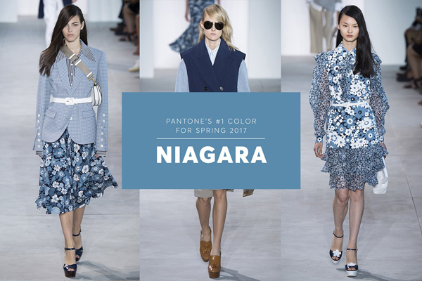 Pantone 挑选 Niagara 为 2017年春夏季的 No.1 大热颜色,可是有根据的! 早在 NYFW 如火如荼之际,Pantone 的颜色专家在119 场的时装秀中,记录了 Runway 上每件时装的用色和色彩变化,用作估计来季的颜色趋势,最后得出此结果!