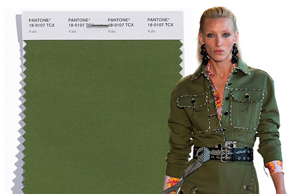 大自然中常见的绿色, 令人联想起绿草如茵的草地或森林,比草木绿深色一点,更易 carry。羽衣甘蓝绿让2017 春夏的颜色潮流更完满,可以中和其他亮眼的颜色。