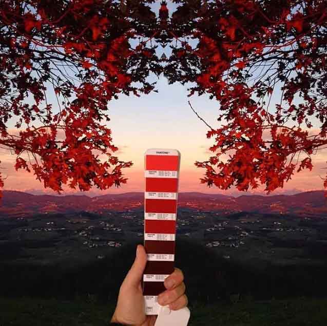 不信你看,有人早已这么干了,意大利的一名平面设计师Andrea Antoni喜欢到处旅游,所到之处都把色卡放入镜头里,让背后的风景和色卡上的颜色块呈现出相匹配的景致,拍出了一系列令人惊艳的照片,让人过目不忘,把这样的旅行照片晒到您的朋友圈,绝对刷爆你的朋友圈~还可以招粉无数哟;