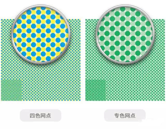 任何一种颜色都可以转换成专色,上图是四色合成出的绿色与专色绿的对比,不通过四色合成色彩,而是专门用一种特定的油墨来印刷,专色油墨覆盖性强,具有不透明的性质,在色彩方面也较CMYK更加艳丽。当然从成本来说,专色印刷费用也会更加高昂一些。