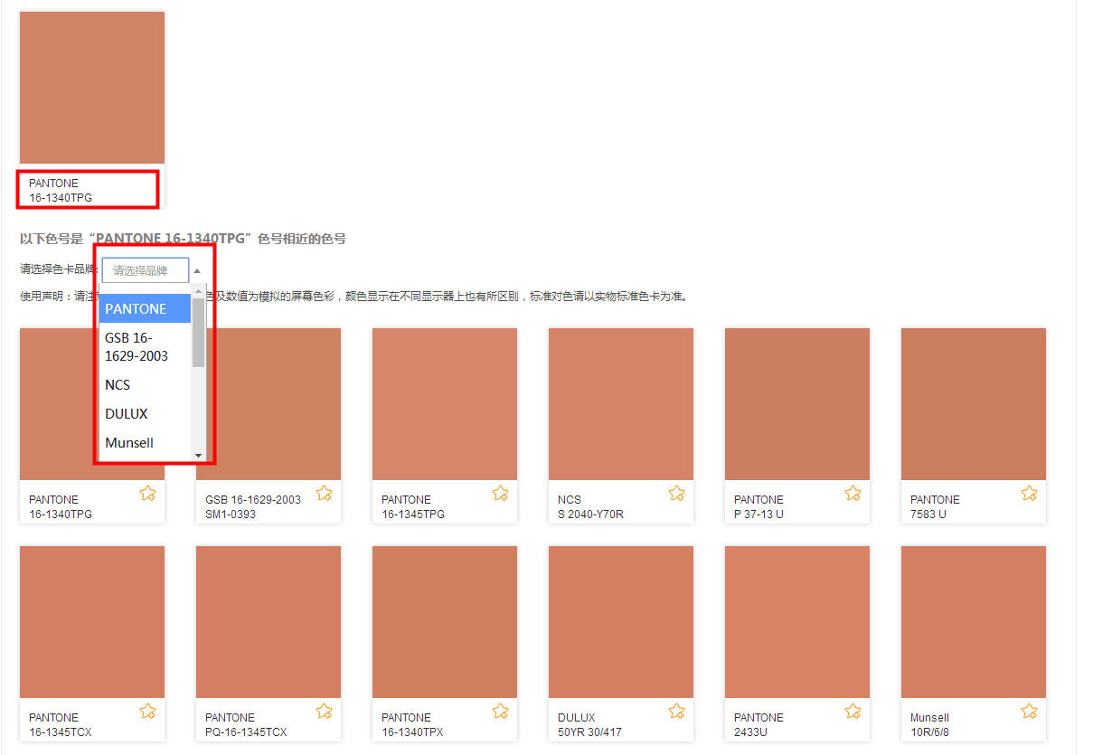 想通过pantone 16-1340 TPG色号查找相近色彩,得出的相近色彩号还能与色卡品牌一一对应,千通彩色库是设计师与生产商找色彩的福音,使用简单方便又快捷。
