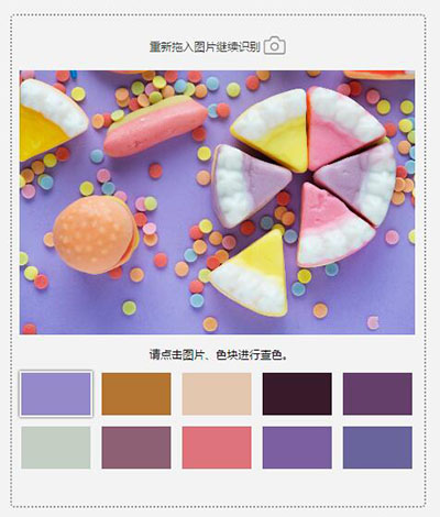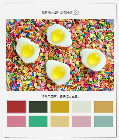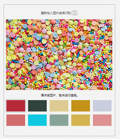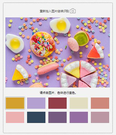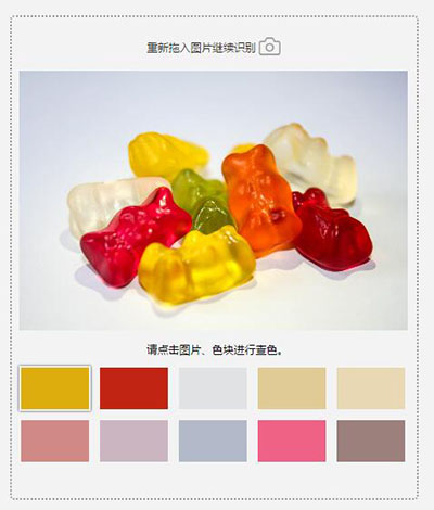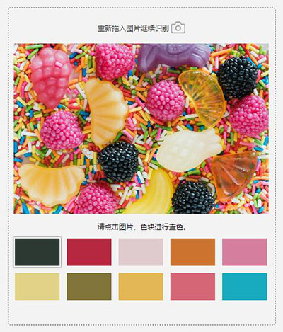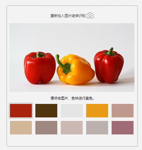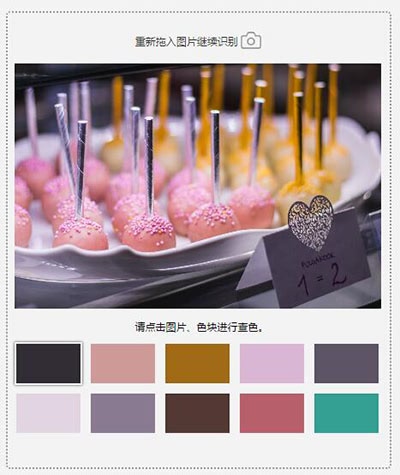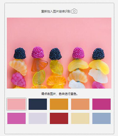 上传图片后,图片底部会出现该图片主要的色彩搭配方案,还可以用鼠标圈出某一部分,自动识别圈出部分的色彩;