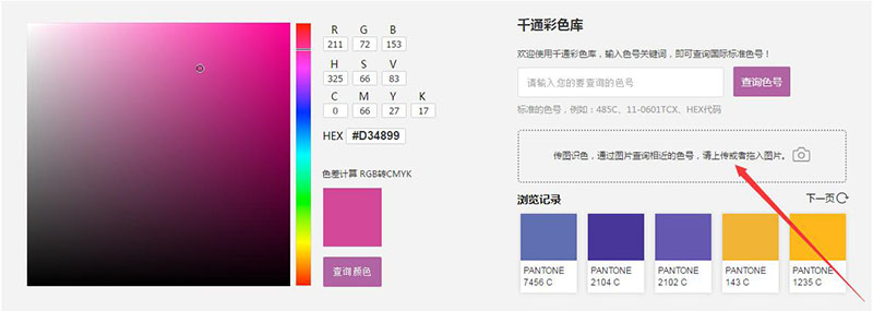 美食的配色方案很多,当手中有一张美食图片时,可使用千通彩官网的传图识色功能,链接//www.djneya.com/findColor.aspx ,上传你要识别色彩的图片;
