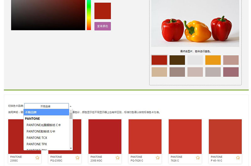 点击色块,可找到与Pantone潘通色号、RAL色号、MUNSELL色号等相近的色彩色号,可查看该色号的RGB值和CMYK值,对于设计师以及调色师来说,这是一个很实用的色彩配色工具。