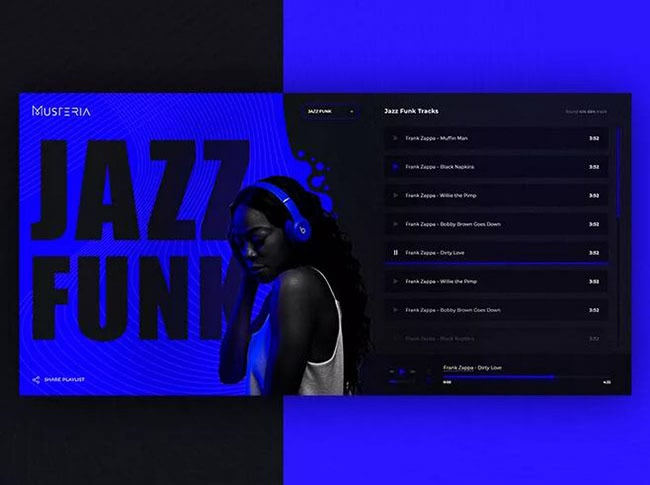 蓝色原本就是世界上接受度最高的色彩,浅蓝可以传递舒适、放松、信任,而深蓝大多显得沉郁、深邃、厚重,会有更加明显的情绪带入感。这个以爵士乐为主题的网站使用了相对深沉和蓝色作为主色调,营造出沉郁优雅的氛围,和爵士乐本身的文化气息相呼应。