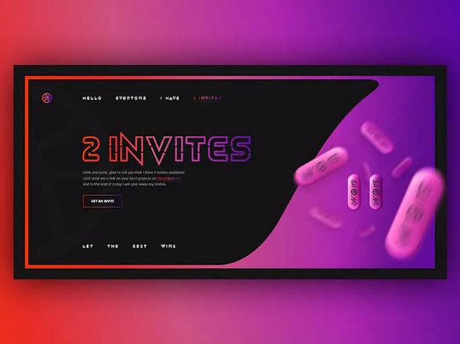 紫色的使用频率并不算高,它本身的这种稀缺性使得它在设计使用中有着特殊的地位。所以紫色有豪华、高级的一面,也有着神秘、稀缺和奢侈的感觉。对于一个吸引人点击的邀请页面而言,紫色强化了它本身的神秘感,提升了价值感,让人欲罢不能。
