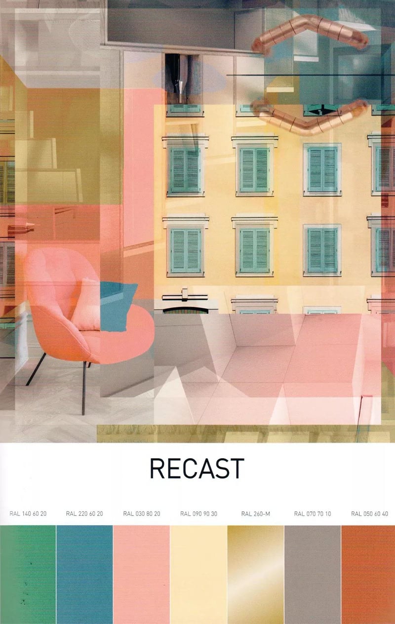 最后一个颜色趋势用柔和的粉彩色代表奢华和爽真的和谐组合。该故事以翡翠绿和海洋蓝为开篇,在色彩系列的第二章节,精致、高贵的色调聚集一堂,他们是珊瑚粉、粉彩黄、金色、饼干色和淡榛子棕。