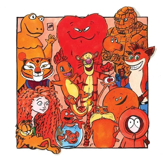 第三张图,南方公园的粤语版中的禄葛,跳跳虎,巨石人,加菲猫,功夫熊猫中的老虎,尼莫,其它的确不认识了,尤其是后面最大的那2个,橙色,作为大家喜欢的色彩之一,这些动漫形象也深入人心,成为了那时代的色彩印记。