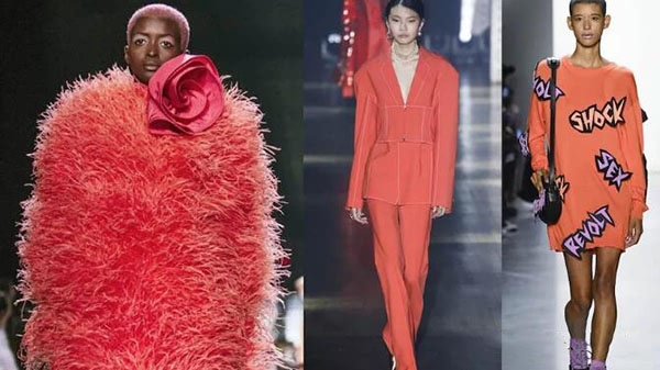 Pantone活珊瑚橘 有单色配色、类似色搭配、互补色搭配、三角独立配色、正方形配色这几种方案,在色彩搭配中,由于该色彩色调鲜艳有冲击力,一般很少会使用单色配色组合。常见的配色更多是作为点缀色使用,譬如:服装与配饰方面可以看到时尚圈的礼服、裙子等,都喜欢用该色彩作为点缀色以此达到引人注目的效果,模特明星穿起来会很养眼、有活力而且看起来还很仙,活珊瑚橘在男装与女装的街头穿着与伸展台款式上都能激发实验精神与玩趣手法。这个温暖的色调在简单的色彩故事里暗示着舒适与积极,但是在图案、组织或甚至整体以单一色彩出现时,则更富有冒险与兴奋的感觉。活珊瑚橘是一个吸引人的重点色调,在色谱上可做为显眼的对比色。
