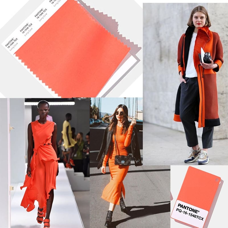 我们可以看到,在服装纺织设计行业,珊瑚橘作为单色或者点缀色使用都是很亮丽的色彩,不过个人觉得珊瑚橘作为点缀色来使用,能得到更好的视觉效果。珊瑚橘跟白色、黑色搭配,在视觉上看着很舒服很仙气,更重要的是用它作为点缀,可以在人群中形成焦点,吸引人的目光。