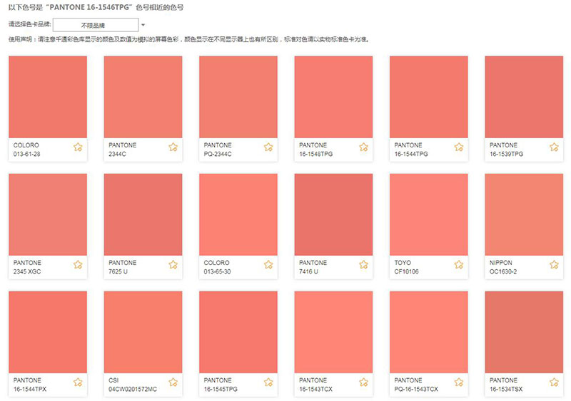 有人说Pantone潘通色彩虽然作为时尚圈的流行色彩,不过由于工作环境原因,用不到Pantone推出的这个“珊瑚橘”年度色,在其他国际标准色卡中有跟“珊瑚橘”一样的相近色吗?其实是有的,如果你想应用该色彩,在国际标准NCS色卡中与之相近的色号有:NCS S 0560-Y80R、NCS S 1060-Y80R、NCS S 0570-Y80R等等;在昂高色卡中与之相近的色号有:Archroma 106-360、Archroma 105-360、Archroma 106-380等等;在RAL色卡中与之相近的色号有:RAL 030 60 50,因为RAL色彩是针对油漆涂料行业使用的,因此在RAL所有色卡系列中很少有与“珊瑚橘”很相近的色彩;在DIC色卡中与之相近的色号有: DIC 2515、DIC2506、DIC F266等等,更多国际标准色号查询可关注: