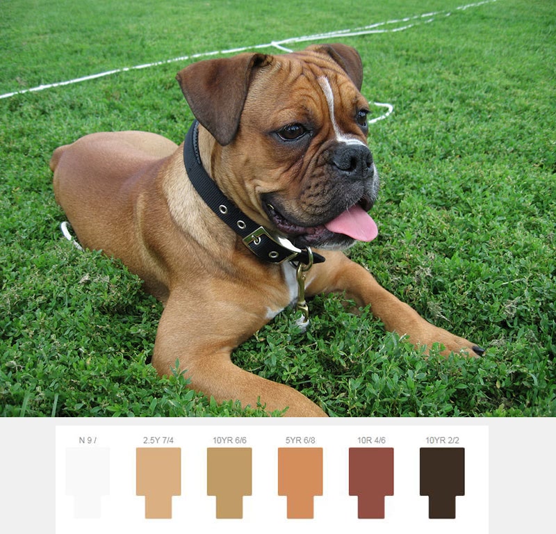 围绕在我们身边的大多数狗都是宠物,它们一直陪伴着我们,是家庭成员间互动的话题之一。狗狗的品种很多,我们辨认它们除了通过身形大小,还有一个方法就是通过色彩来区分。仔细观察,其实狗狗也有许多不同的颜色,这些“着色”和“标记”往往区别于其他犬,虽然混合品种可以混合犬科动物的每一个特征,但纯种犬的典型颜色范围是独特的,每个特定品种都是独一无二的。这里描述了各种最受欢迎的品种,将狗的色调与Munsell系统最佳匹配相匹配。