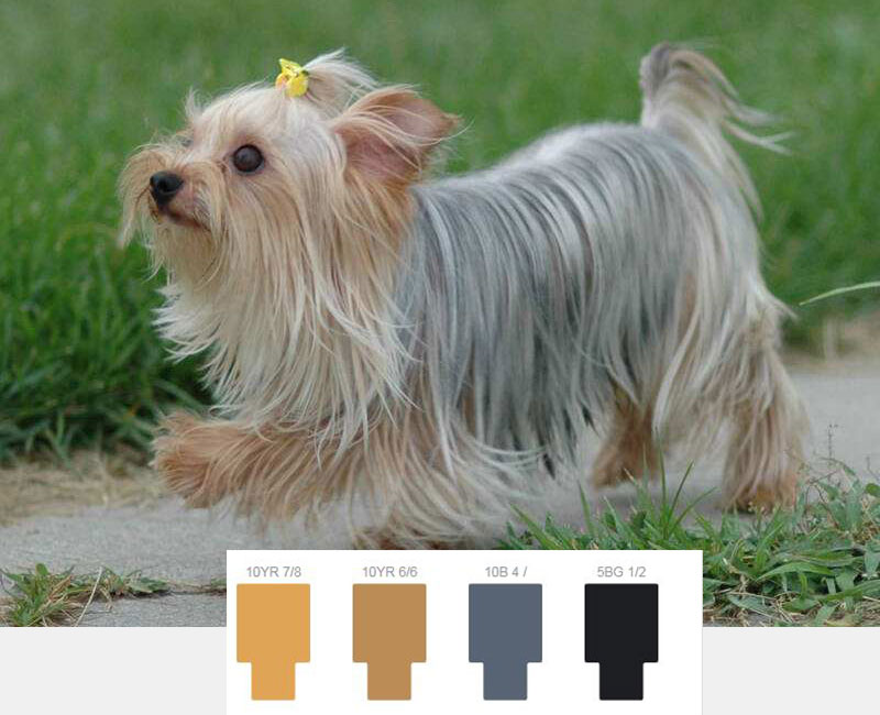 约克夏梗犬是一种性格开朗活泼的宠物狗,具有乐观和活泼的个性。这些伟大的伴侣犬通常很聪明,东西学得很快。无论是活泼的小猎犬还是宠爱的小狗,他们的好奇心都会让他们潇洒地探索。它们的颜色范围从:黑色和金色,黑色和棕褐色,蓝色和金色,蓝色和棕褐色,经典颜色号有munsell 10YR/7/8、10YR/6/6、10B/4/4、5BG/1/2。