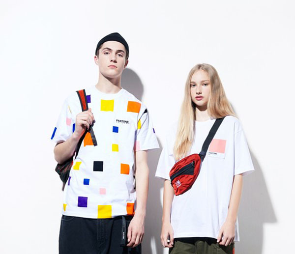 时尚新手,一般害怕驾驭不了鲜艳颜色,可以选择以黑白为主的潮T,基础底色印制代表Pantone的色卡,设计中凸显Logo的可爱,成为随便搭也绝对不失败的潮流单品。