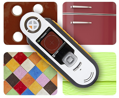 比色计是利用内部光源,将光向下照射到样品表面上。在反射回到比色计的过程中,光将通过三个滤光片:红色、绿色和蓝色。这些滤光片按照人眼感知颜色的方式提取三刺激值(RGB)。它可用于校准计算机显示器,确保从屏幕上看到的颜色是准确的。它们也可用于指定颜色,设计师可以随身携带比色计,捕捉各类灵感颜色用于设计。然而,比色计也存在性能限制,它们无法检测同色异谱(一种常见的现象,两种颜色在某种照明条件下看起来匹配,但在光线变化时变得不匹配),因此并不是所有生产应用的理想选择。