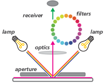 分光光度仪与比色计的工作方式几乎相同,但在滤光片上有所区别。现代分光光度仪通常配备31个滤光片来测量整个颜色光谱,而不是像比色计那样使用3个滤光片来测定颜色的RGB值。这些滤光片可测量31种不同波长的光,以确定样品的颜色。由于分光测色仪测量功能更强大,价格也稍贵,从国外购买更是价格昂贵。