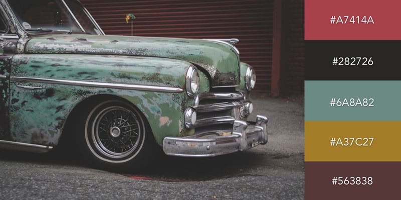 第二组:这是非常经典且复古的风格配色,从青色到红色再到橙色,这是多种深色系色彩的组合,这类组合非常适合柔和的外观。对于喜欢更简单的设计,设计师们还可以选择仅使用前三种颜色作为色彩搭配。