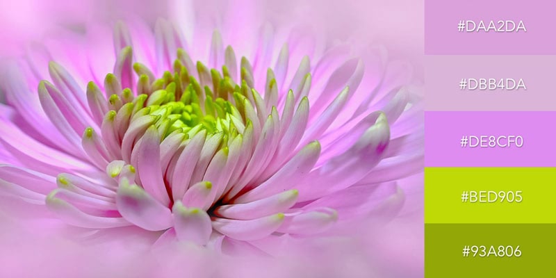 第八组:清新艳丽的调色板,是设计项目中常见的色彩搭配。画面中一系列洋红色与生动的黄色和橄榄色调相结合,视觉感非常好,清新、朦胧,干脆的风格也惹人爱。