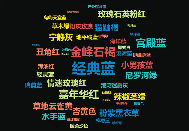 2020年已经过去了,作为经常与颜色打交道的色彩相关工作者,面对着成千上万的色彩,哪种色彩名字是在你耳边响起最多的呢?