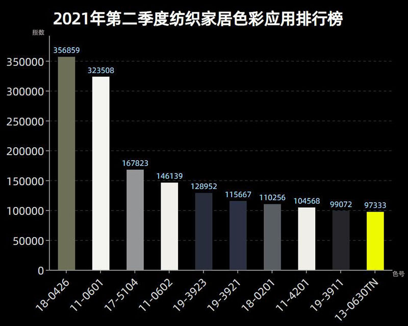 纺织家居色彩应用排行榜搜索指数排行前10的色彩