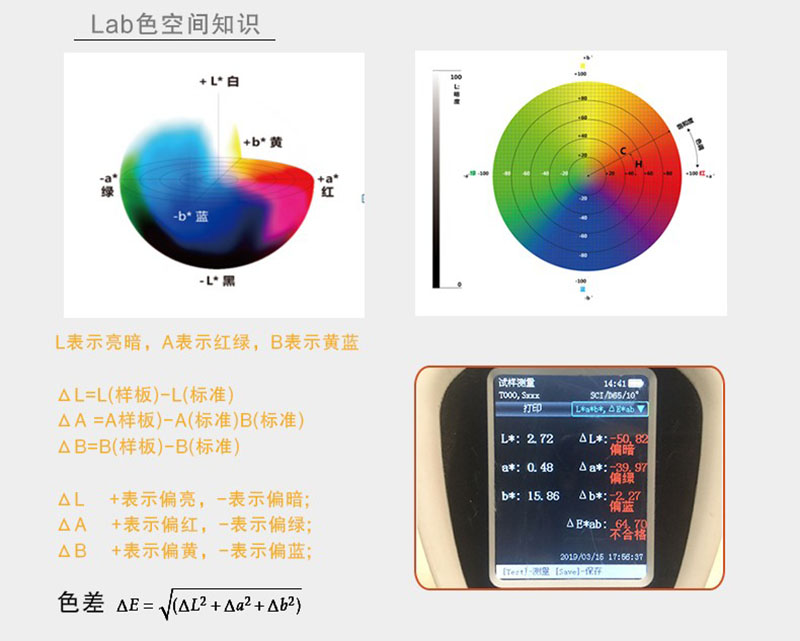 3. 色差仪检测法:使用色差仪测量样品的颜色数据,通过比较样品色彩参数的数值,得出样品间的色差,确定是否符合规定的要求。