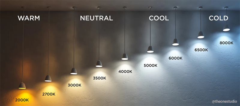 一般来说,设计师会建议很多客户居住空间选择3000K。这是因为自然的暖白色温度在家里营造出舒适的氛围。对于商业或更多功能空间,通常选择更多蓝色色调的4000K灯泡温度。 提示:同一房间内的所有光源具有相同的温度非常重要。混合开尔文温度和温度可能会使您的设计失去平衡,并使您的房间感觉不舒服。