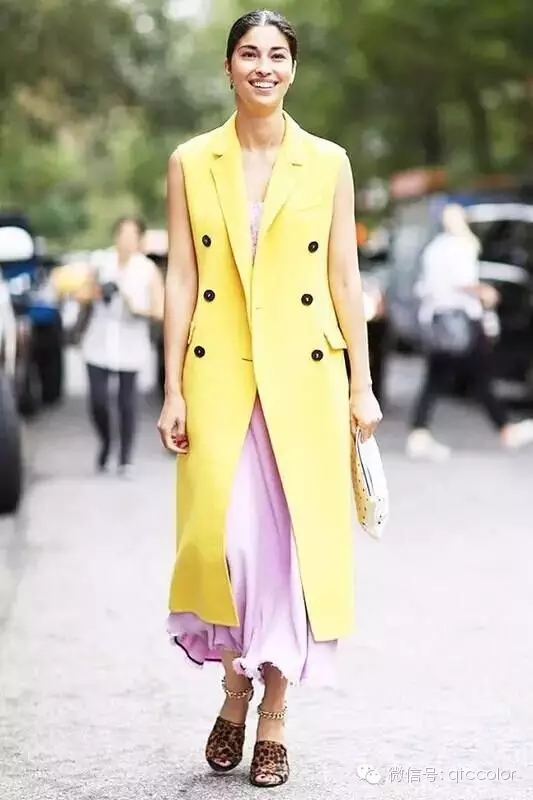 担心鲜亮色彩过于抢眼难以驾驭,可以适当降低饱和度,让黄色更容易融入搭配!
