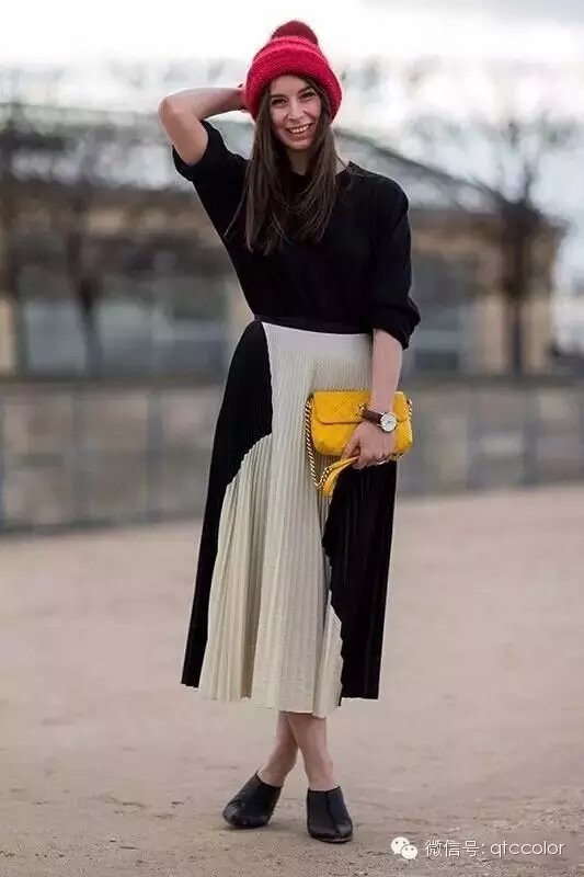 也可以小面积运用MinionYellow,内搭、褶皱都因为它的融入成为全身亮点!