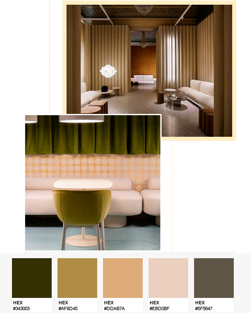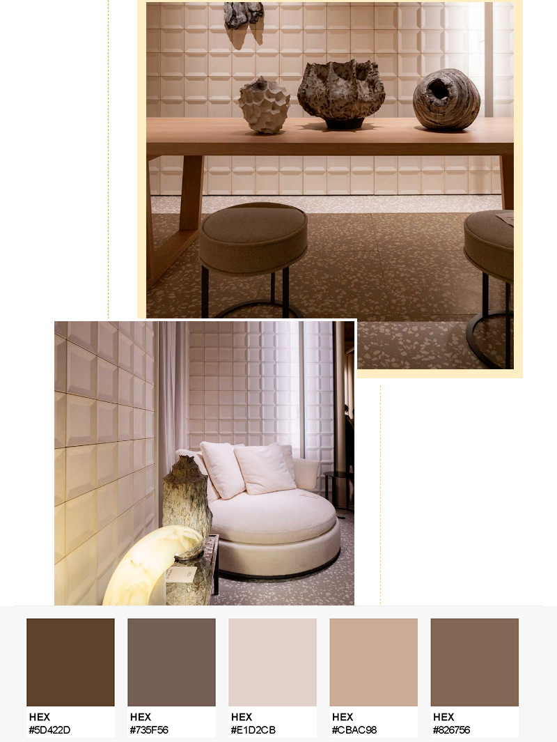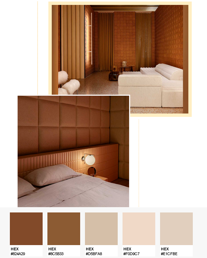 色彩是意大利设计中的灵魂元素之一,是视觉上的感知,更是情感的传达与氛围的塑造。意式风情在现代空间中的色彩运用,往往追求一种宁静中充满活力的平衡感。目前,这种趋势在意大利很流行,调色板多以米色、奶油色和灰褐色等温暖的中性色为主,同时还有赤土色、橄榄绿和太妃糖棕色等浓郁的朴实色调。在米兰观察到的这种趋势的一个迷人变化是,将暖色调与冷色调的房间交替使用,包括米白色和绿松石色。