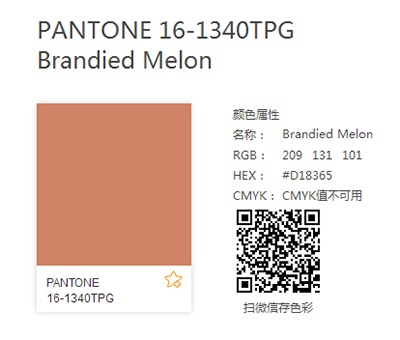 从花朵色彩到白兰地蒸馏酒再到人体皮肤,色号pantone 16-1340体现得淋漓尽致,个性的色彩犹如琥珀一般,经得起时间的沉淀,留下历久陈新的美!在时尚服装T台、街头时尚、banner和海报中,pantone 16-1340经常被归为核心色、时尚色和点缀色来使用。