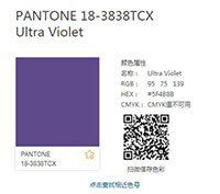 | 2016年度色 蔷薇粉(Rose Quartz 潘通色号:13-1520) 静谧蓝(Serenity 潘通色号:15-3919) | 2017年度色 草木绿(Greenery 潘通色号:15-0343) | 2018年度色 紫外光色(Ultra Violet 潘通色号:18-3838) | |