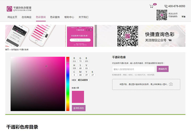 千通彩色库,是一个强大的实用性高的色彩管理系统,这里集合了国际上所有知名品牌色卡的色号,目前色库目录中国际标准色号高达百万,分别有:美国PANTONE潘通(彩通)色号、德国RAL色号、NCS色号、munsell色号、昂高色卡号等等,在线查询国际标准色号可谓是非常方便,其实,千通彩色库除了能在线快速查询色号外,最近新升级了一个功能就是能根据国际标准色号在线生成配色方案,该功能的实现可大大提高设计师配色师们的在线配色水平,我们详细来分析一下如何使用该配色方案生成器;