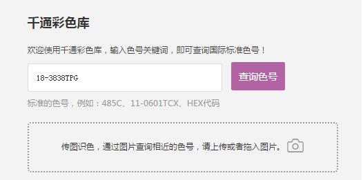 一、以美国色彩机构PANTONE潘通为例,查询2018年的年度色彩“紫外光色”的配色方案有哪些,可以这样,在色库输入框中输入“紫外光色”的国际标准色号:18-3838TPG,点击查询色号;
