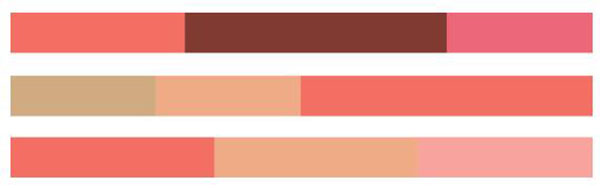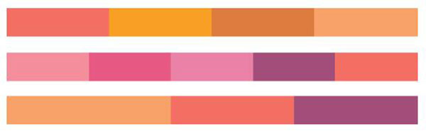 该组调色板使用的色彩趋于暖色调,大胆而绚丽的色调,令人眼花缭乱,令人眼花缭乱的色彩就如同在太阳升起和落下时溅在天空中,PANTONE Living Coral充满活力和活力,增添了我们愉悦的温暖感受。