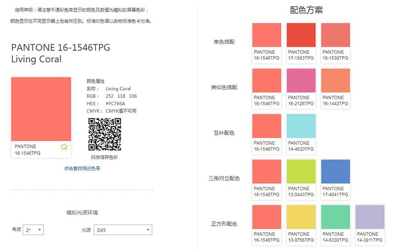 珊瑚礁是海洋生物的生存之源和栖息之地。充满活力而又芳醇甜美,Pantone 16-1546,Living Coral呈现温暖和滋养,为我们不断变化的环境提供舒适和轻快,我们在国际标准色彩管理系统中可以查询到,Pantone 16-1546活珊瑚橘的RGB值是252 118 106、它是一个饱和度为58,亮度为99的色彩,作为一个暖色调的色彩,它互补色是趋向青色的色彩。