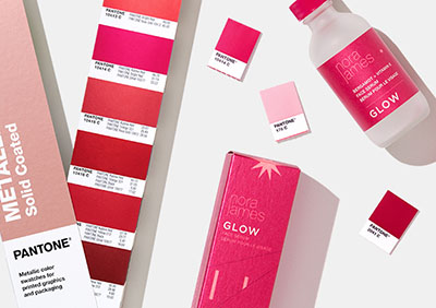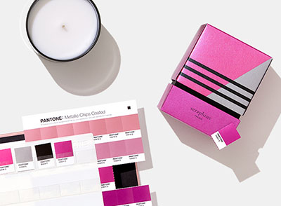 在21世纪,不同的颜色光泽表面和金属颜色饰面光泽反映了内部包装产品所带来的无形承诺,通常高级品对应的产品包装盒呈现出来是一种高级感,这次的调色板占据中心舞台的是两个大胆挑衅的色彩, 一个调情的粉红色和一个感性的紫红金属色,与时尚精致的深黑色组合为产品包装增添了戏剧性,闪烁的银色金属色作为点缀色则注入了时尚的现代感。