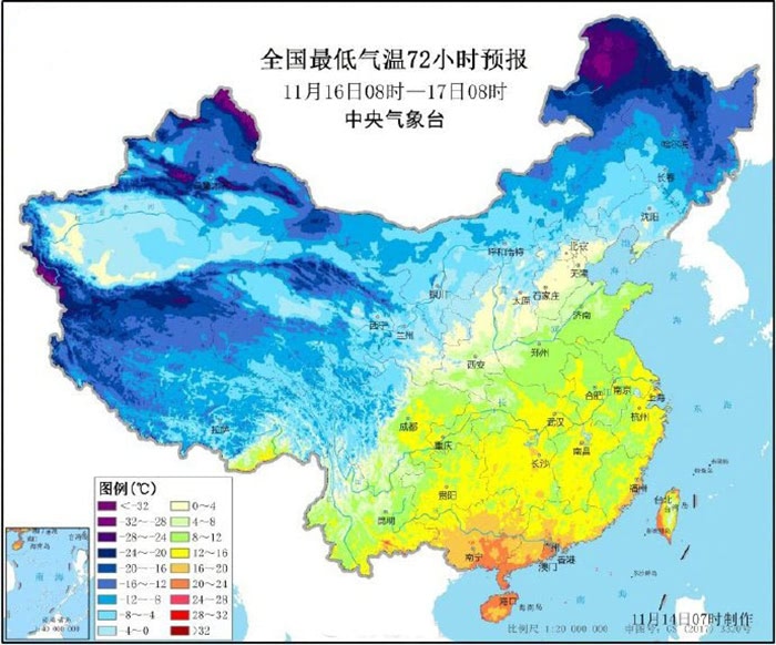 上周经历了轰轰烈烈的“剁手节”双十一后,等待快递是一种煎熬。买的棉裤还没到,冷空气的快递却迫不及待的来相见了。这一次,谁都逃不掉,大部分地区已经冷到发紫,黑龙江已冷到发黑的局面,而一直被遗忘的两广地区,也算是入冬成功了,最近气温16℃~27℃。中国天气局发布的天气降温预报图引入了热门话题#咱家鸡冠冻紫了#,新色号“鸡冻紫”出炉了,入冬穿衣指南也要备上了。