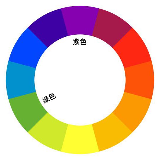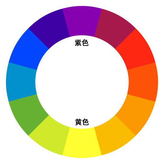 在色相环中,紫色和黄色是互补色,不论是色相和明度差异都非常大,因此黄色与紫色的搭配容易产生相当强烈的视觉强度。