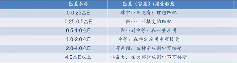 在工业和商业中,准确的评定产品色差是非常重要的一环,除了上述提到的观察者自身条件,外界因素譬如目视对色时的光源、观察角度等因素都可能导致颜色评价产生差异,色差让我们难以忍受,但难以避免,我们要客观看待色差的存在,同时要清楚人眼对不同色差范围的接受程度 。