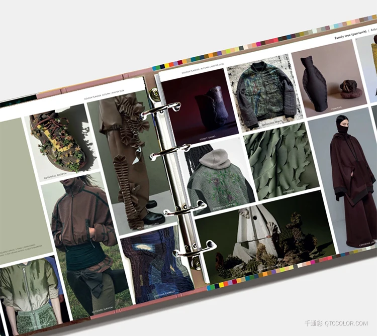 - 为增加实用性,每个色彩预测系列强调四个核心色彩做为趋势的基础色,一至两个补充色彩系列用来支撑核心色彩系列故事,以及二至四页的色彩搭配页面用以呈现不同的色彩组合面貌,包括色彩运用比例