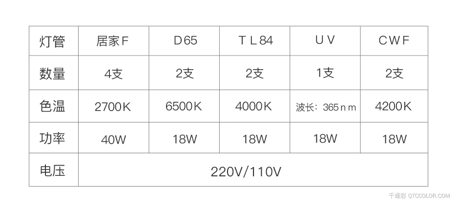 标配光源:D65、TL84、UV、F、CWF等5种光源