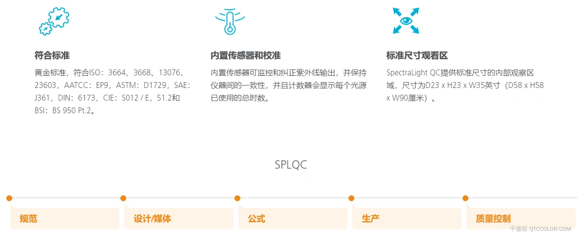 - 行业标准:符合ISO:3664、3668、13076、23603,AATCC:EP9,ASTM:D1729,SAE:J361,DIN:6173,CIE:S012 / E,51.2和BSI:BS 950 Pt.2。